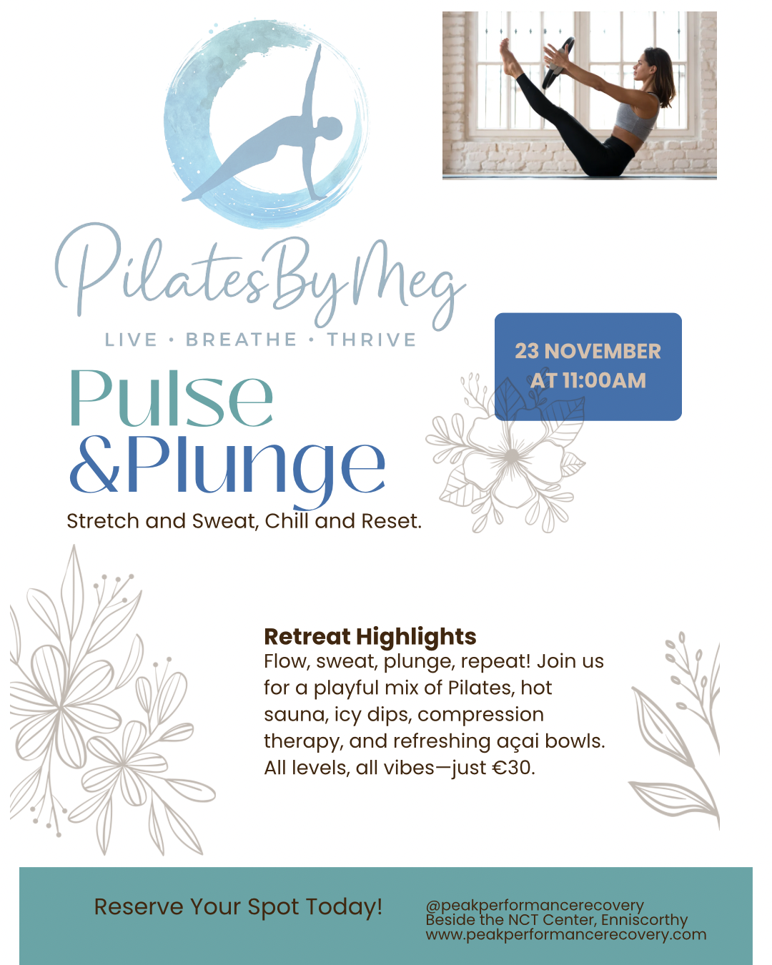 23rd Novemver @11. Pilates, Sauna, Ice Bath and Compression Boots
